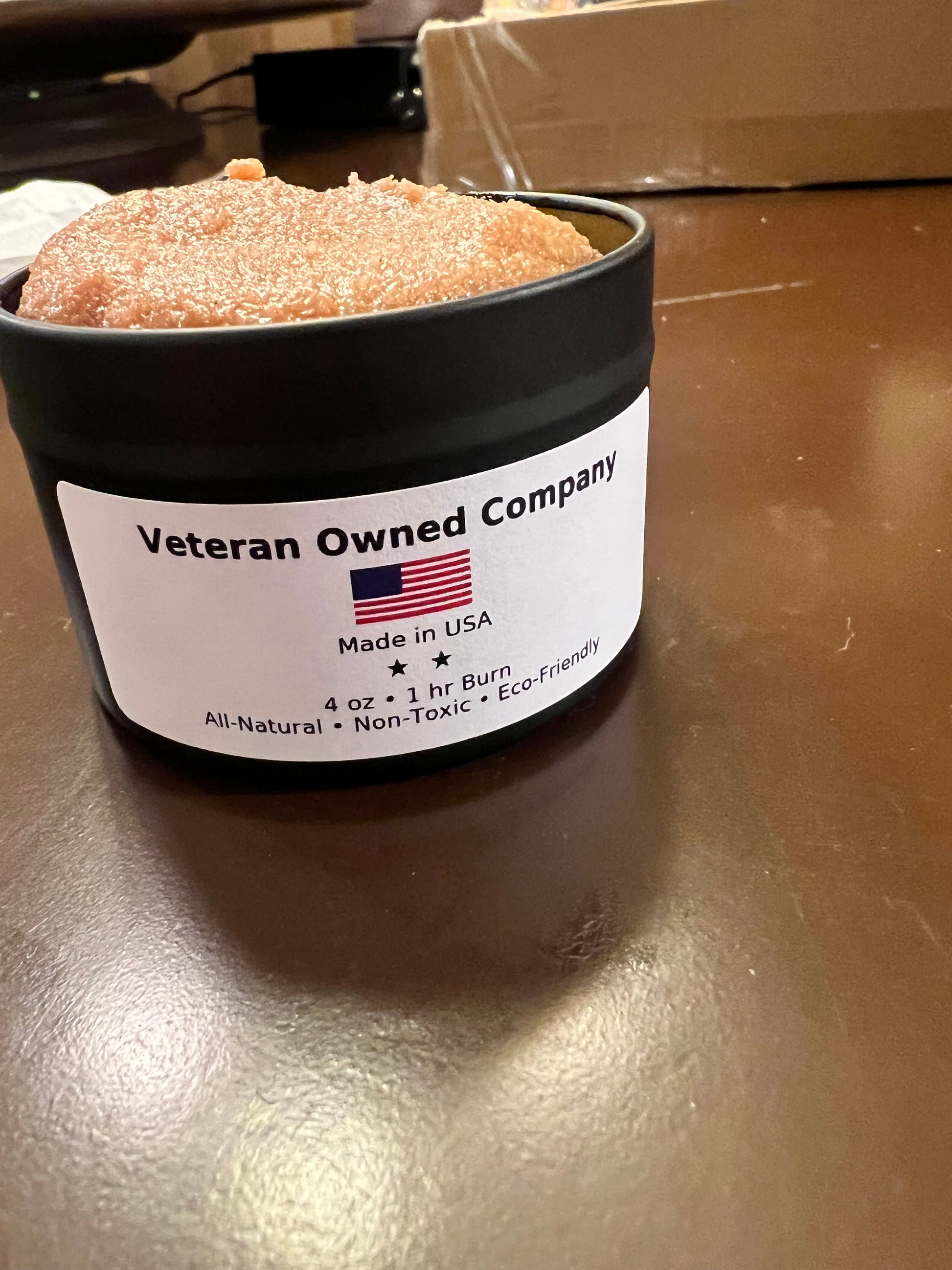 This compact 4 oz tin packs serious fire power. It will burn for over an hour